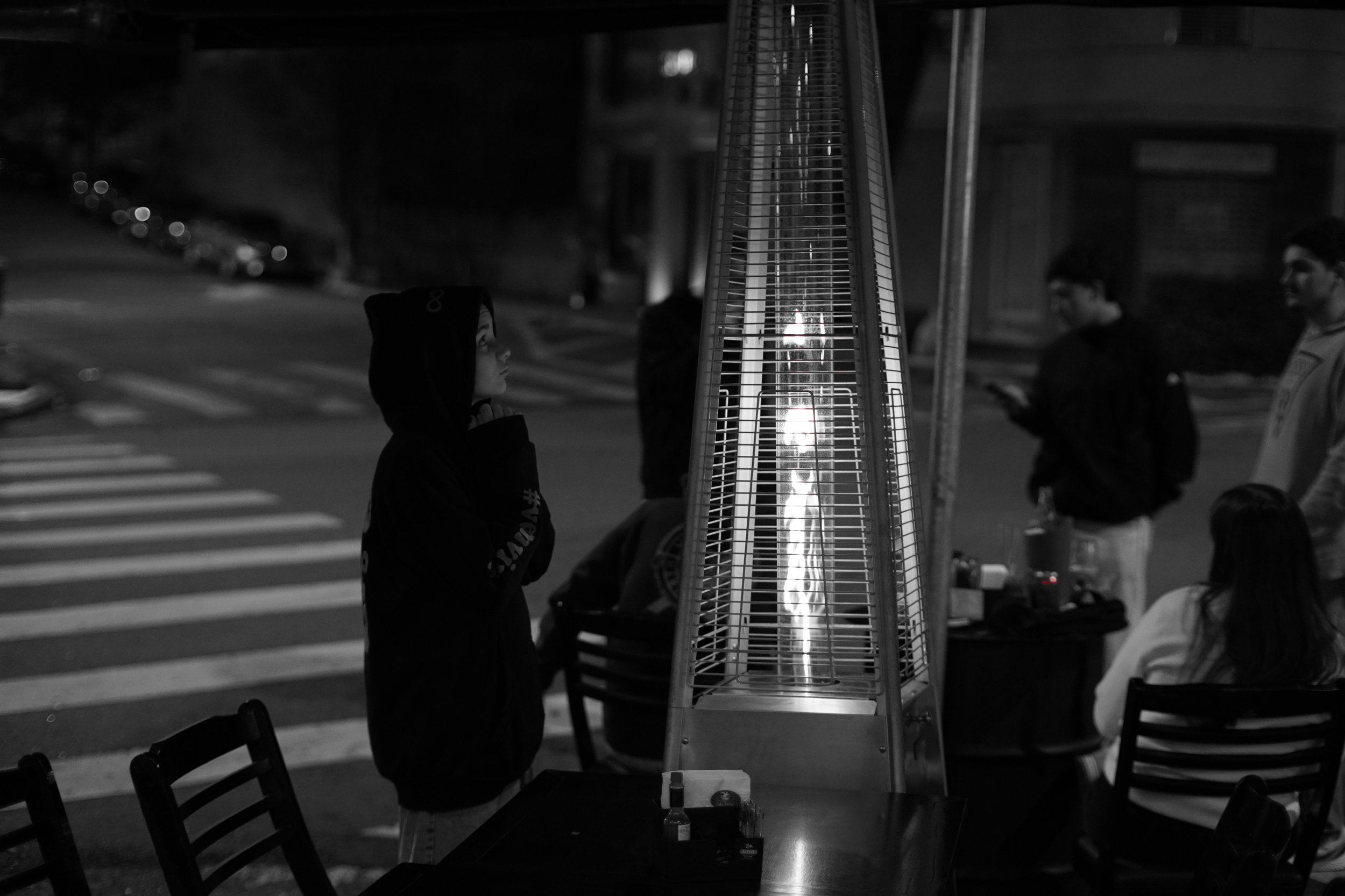Warming up by the fire on a cool night, at a quiet corner bar. Sony A6400, incredible f 0.95 (Brightin star 35mm) 1/200s ISO 1250.
