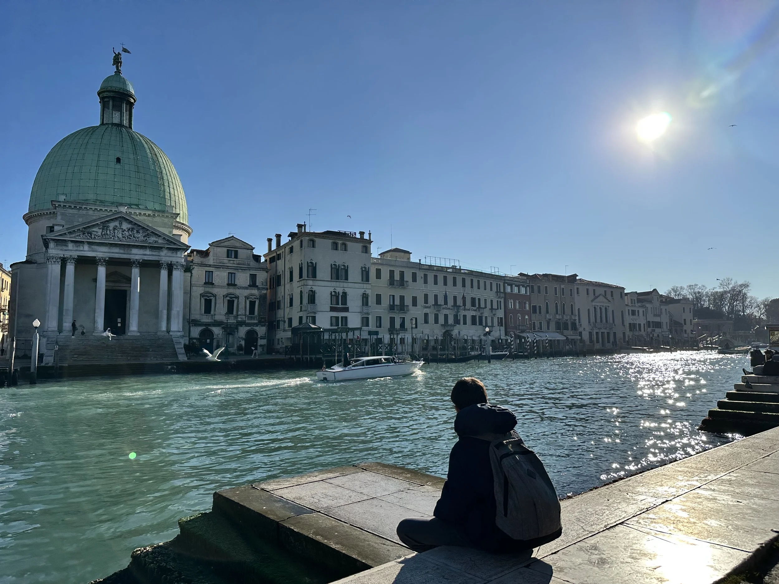 Morning light in Venice: sitting by the Grand Canal, facing the dome of San Simeone Piccolo.. iPhone 14 Pro, f1.78 1/10753s ISO 80.