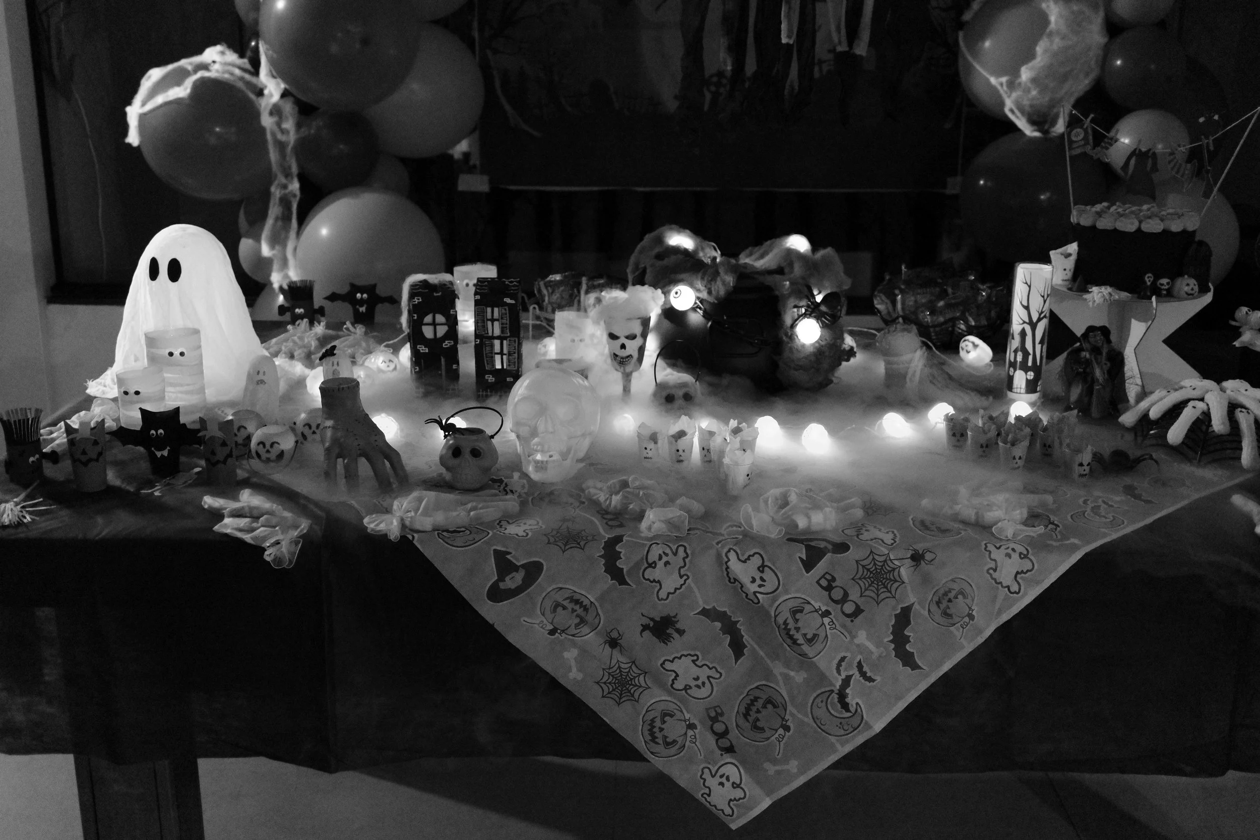 Sweet table at our building’s Halloween party – full of ghosts, cobwebs, skulls and spooky fun 🎃👻🕷️. RICOH GRIIIx, f 2.8 1/30s ISO 3200.