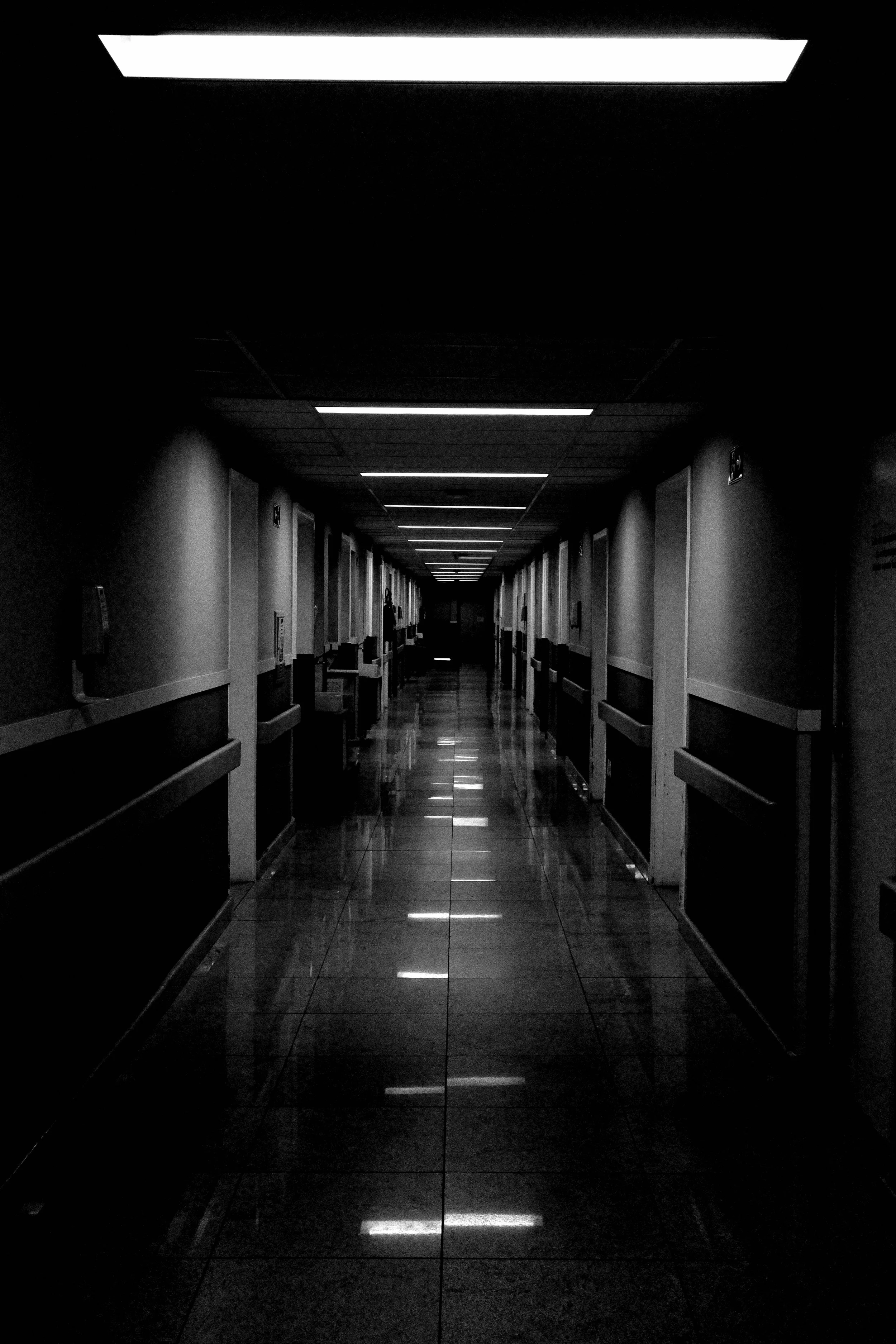 Silent hospital corridor — where light and shadows meet, evoking both solitude and mystery. Ricoh GRIIIx, f6.3 1/125s ISO 3200.