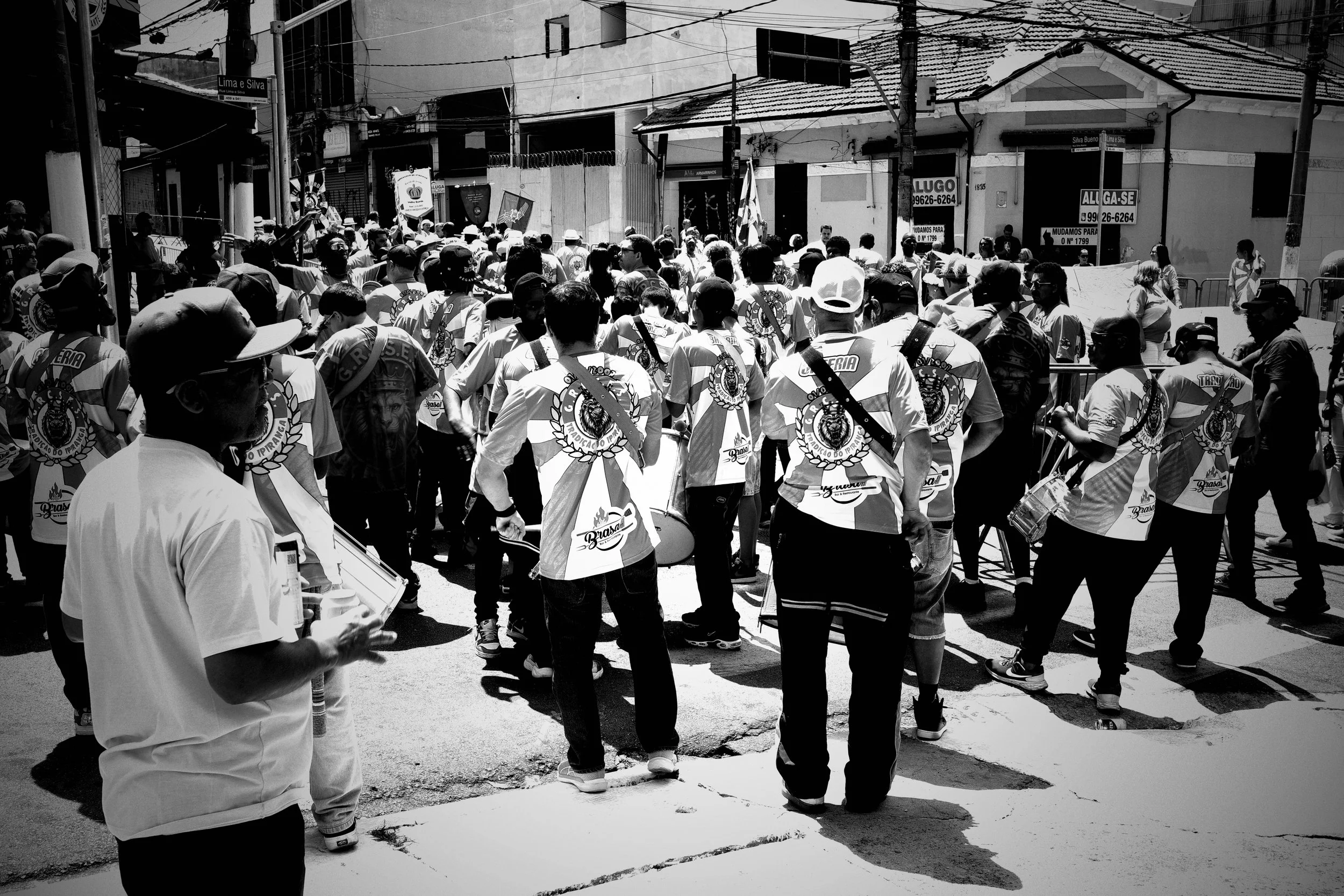 The drums take over the street, as the samba school turns the neighborhood into a living stage of tradition and celebration. Ricoh GRIIIx, 1/100s f8 ISO 320.